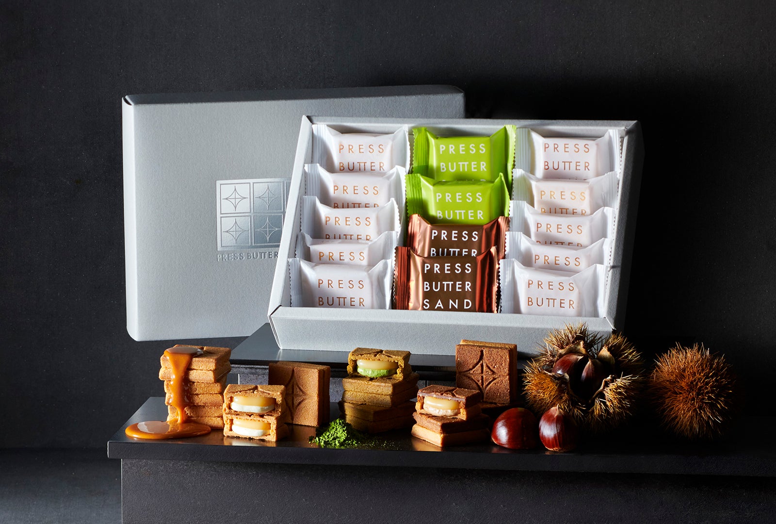 「バターサンド3種詰合せ〈栗・宇治抹茶〉」に含まれる「バターサンド〈宇治抹茶〉」は、「PRESS BUTTER SAND」関西エリアとECサイト限定の商品。この時期にしか食べられない、特別な組み合わせをぜひお楽しみください。