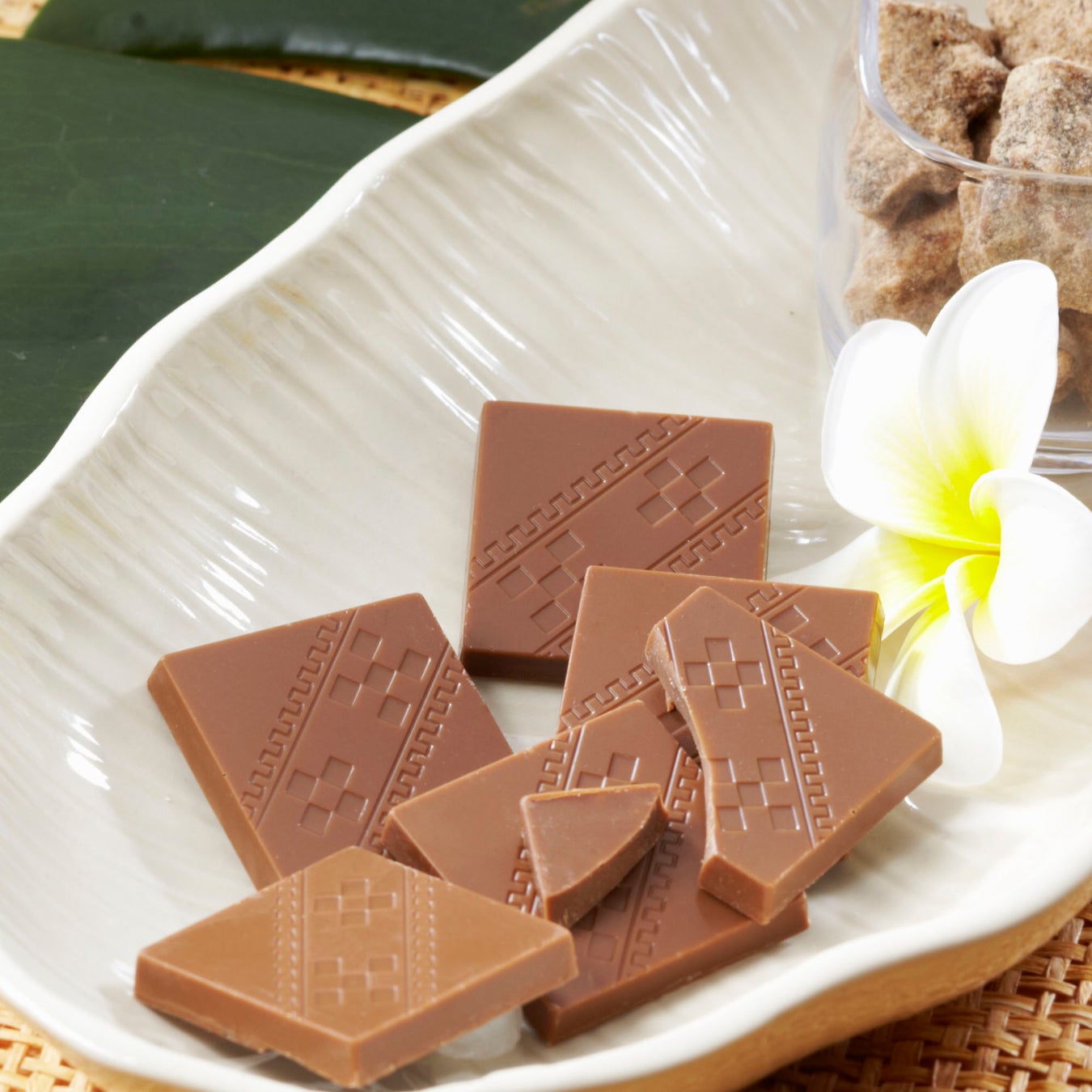沖縄県の大自然に育まれた黒糖の素朴なおいしさがチョコレートととけ合う、深みのあるまろやかな味わいです。