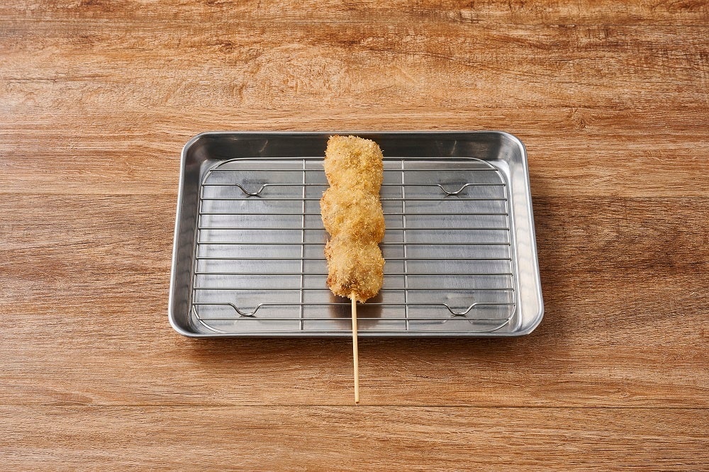 牛肉の希少部位で「赤身肉の王様」と呼ばれることもあるランプを使用した串カツです。クセがなくとても上品な味わいが特徴で、あっさりしています。ソースもしくは塩をかけて召し上がるのがおすすめです。