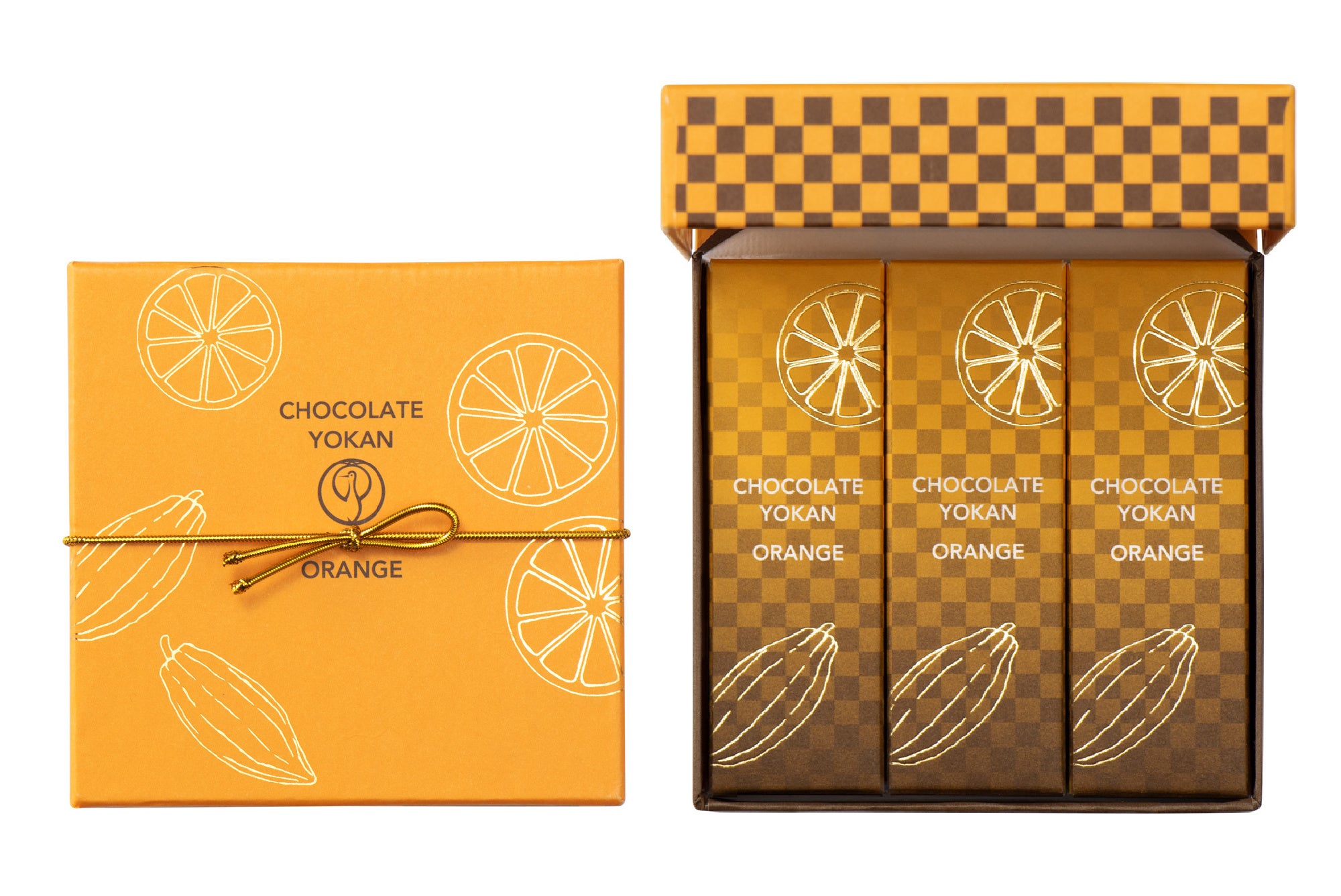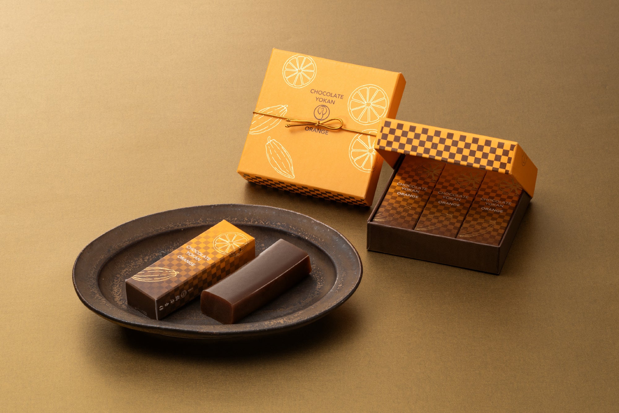 「チョコレート羊羹 オレンジ」は、ひとくちお召し上がりになれば、芳醇なカカオの風味と、オレンジピールの甘く爽やかな香り華やぐ、手のひらサイズの特別なお羊羹。