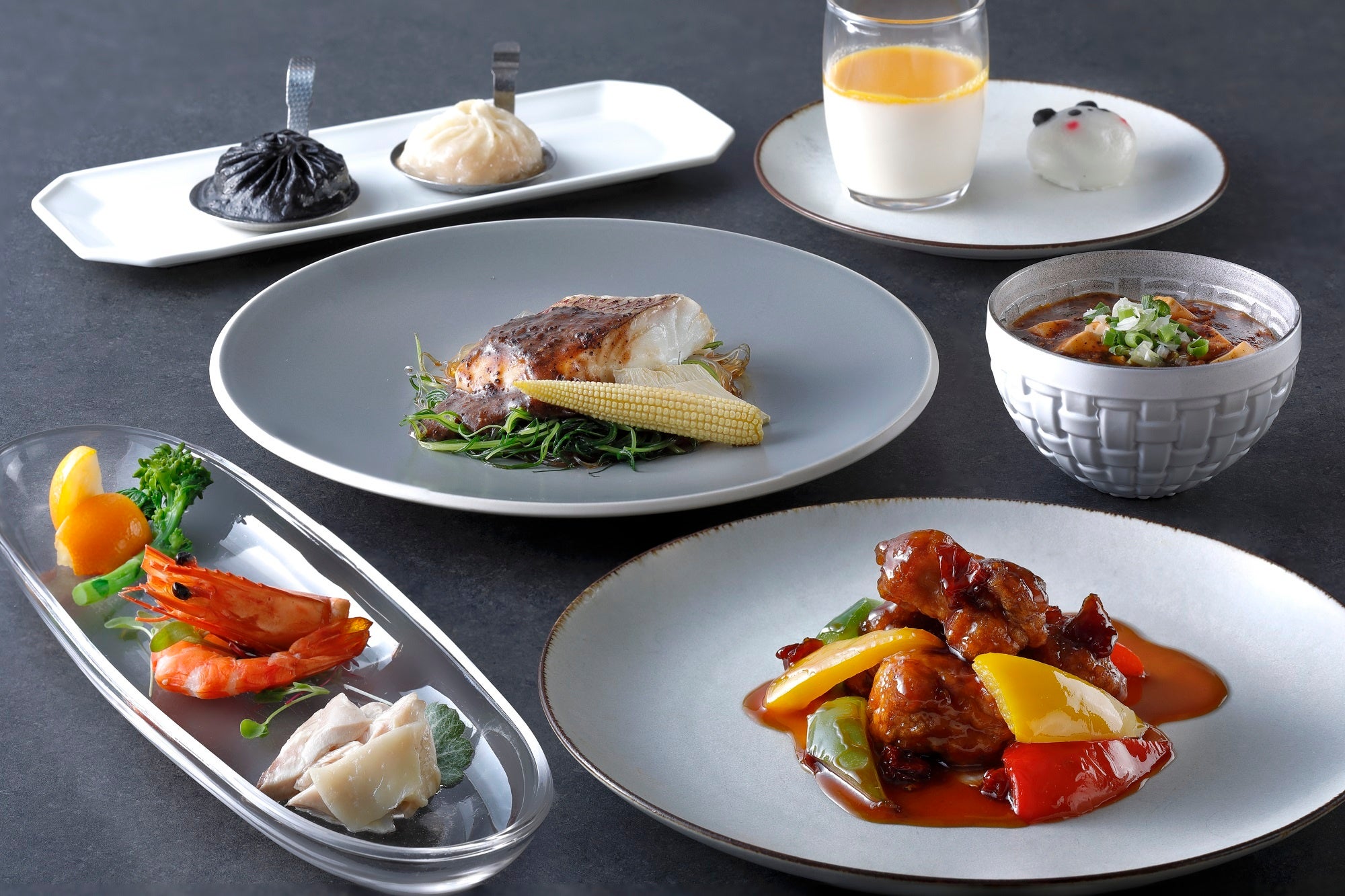 【料理内容】前菜盛り合わせ/小籠包2種/白身魚の豆鼓蒸し/ドライトマト入り黒酢酢豚