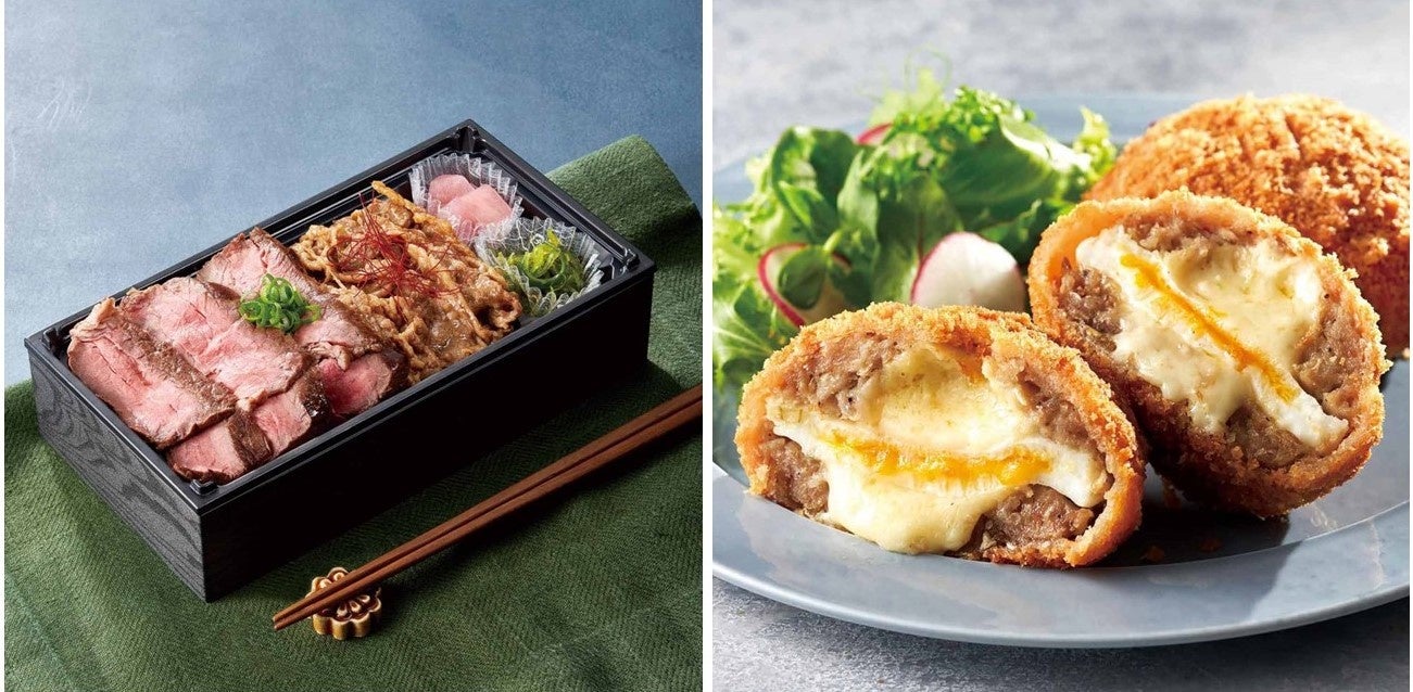 /米沢牛ステーキ&焼肉弁当(1折) 2,862円 実演 (写真左)