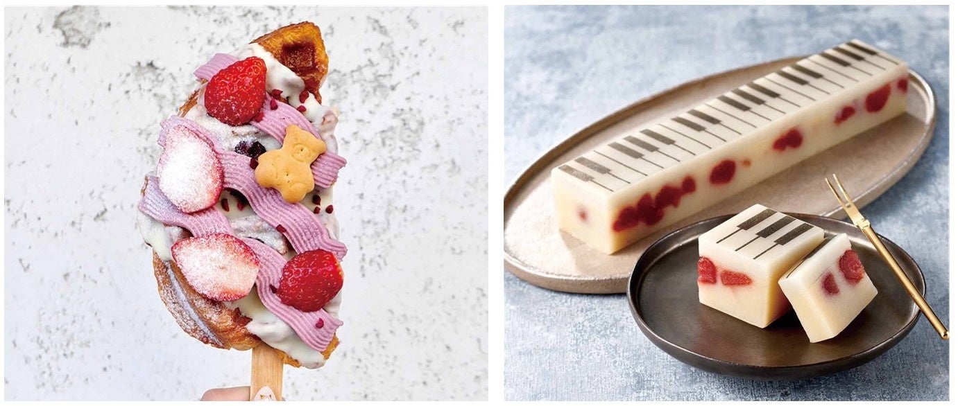 /AOPバタークロッフル ストロベリールージュ(1個) 810円 実演 (写真左)