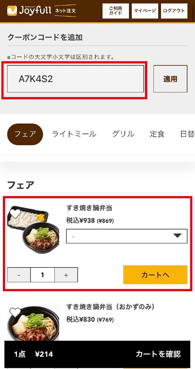 10%OFFクーポンをご利用時のジョイフルネット注文の流れ