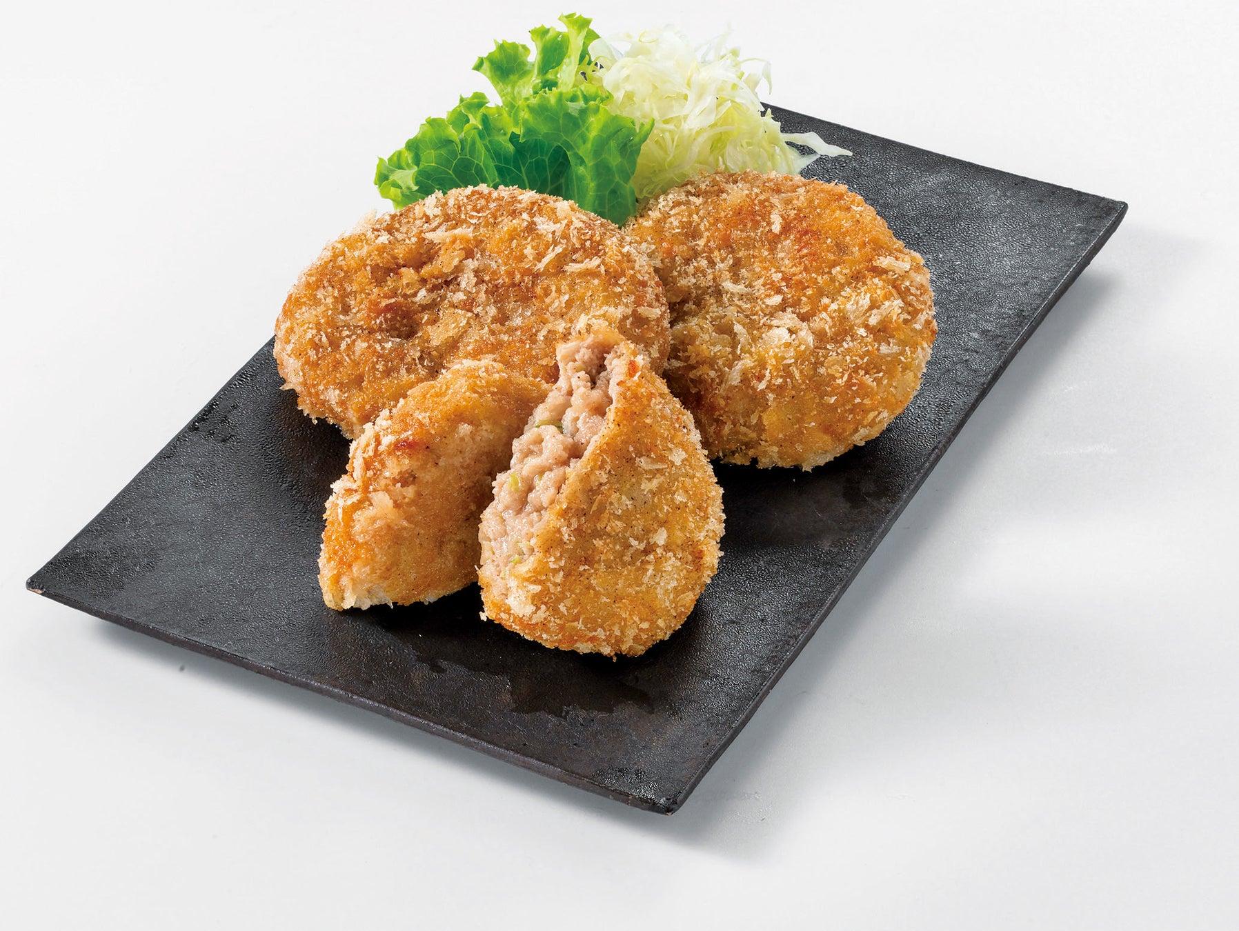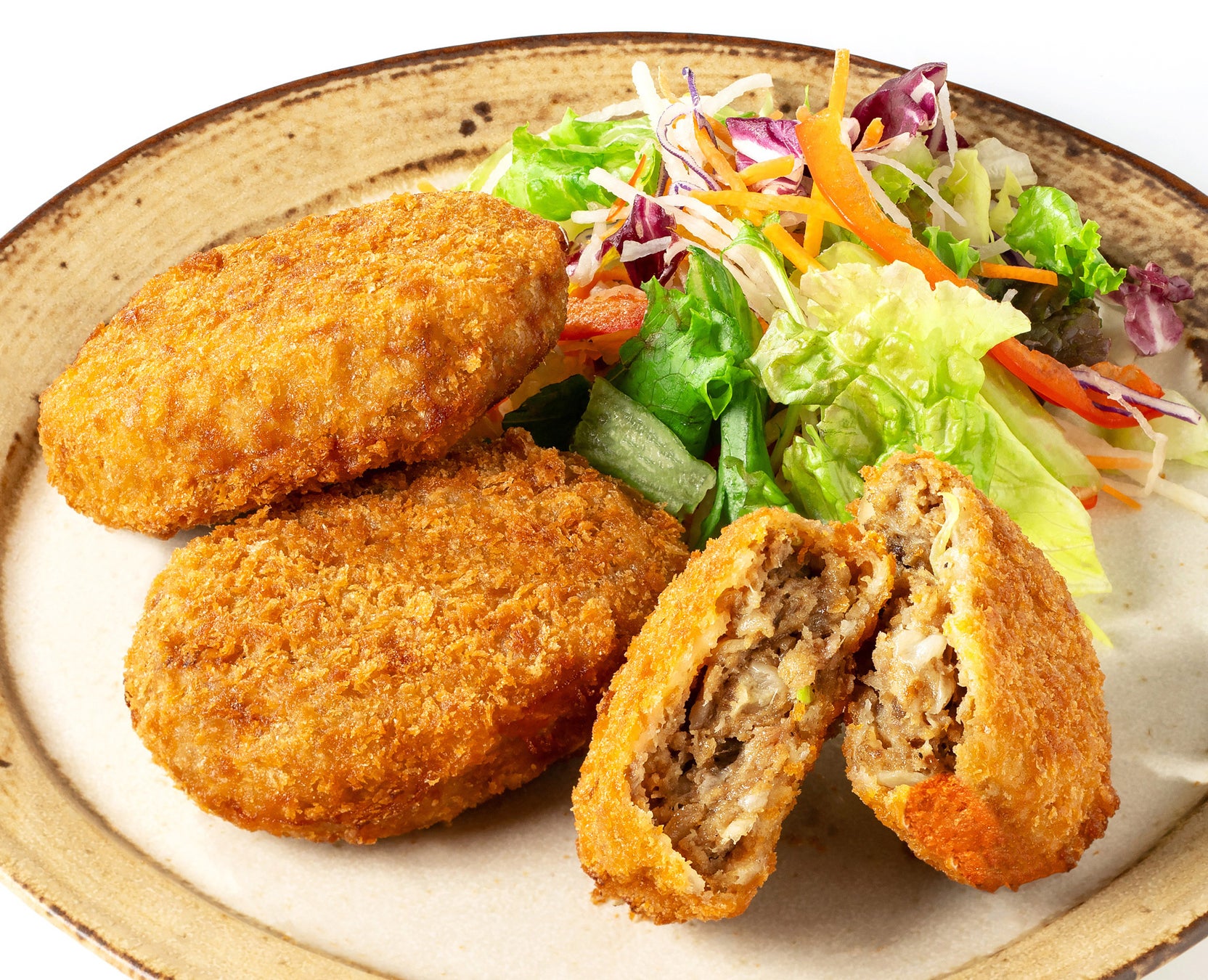 メンチカツを作り続けて21年。きめ細やかな品質管理で、ふるさと納税の返礼品でも人気の自社ブランド「観音池ポーク」を使用したメンチカツ。「おふくろの味」をコンセプトに、自慢の豚肉とたっぷりのお野菜を使っているため、どこか懐かしさを感じます。