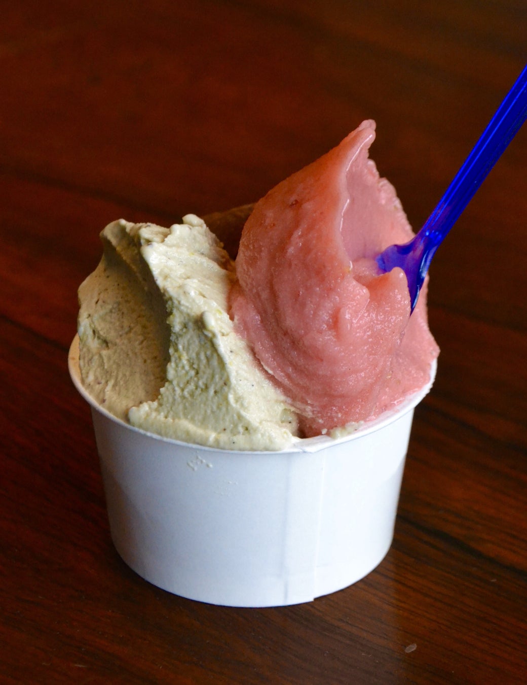 《東海地区初出店》【福岡】〈GELATO NATURALE〉ジェラートダブル(博多あまおうとピスタチオ) 税込870円