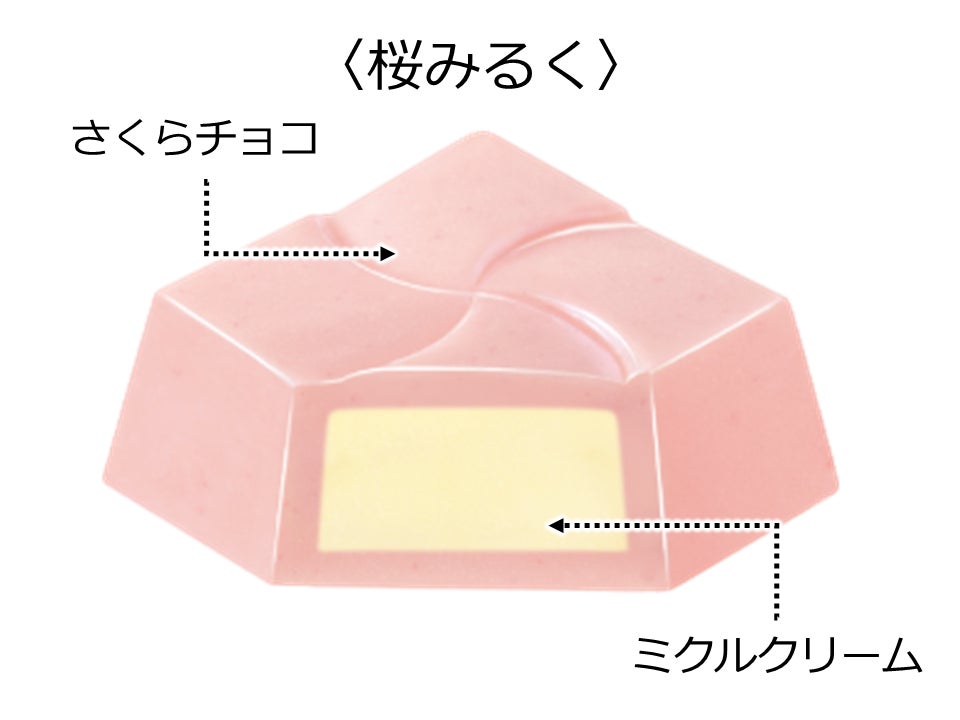 まろやかな甘みのミルククリームをさくらチョコで包み、クリーミーな味わいにまとめました。