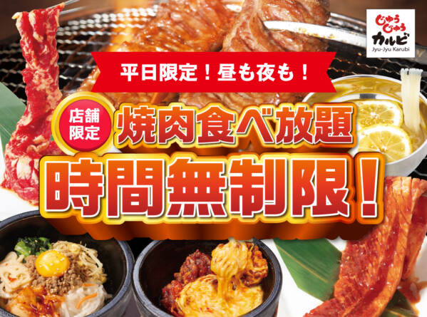 【時間無制限】平日限定!じゅうじゅうカルビで時間を気にせず焼肉食べ放題