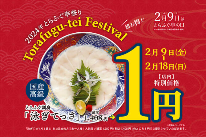てっさが1円!お持ち帰りも特別価格に!【とらふぐ亭祭り】令和6年2月9日~2月18日まで開催!