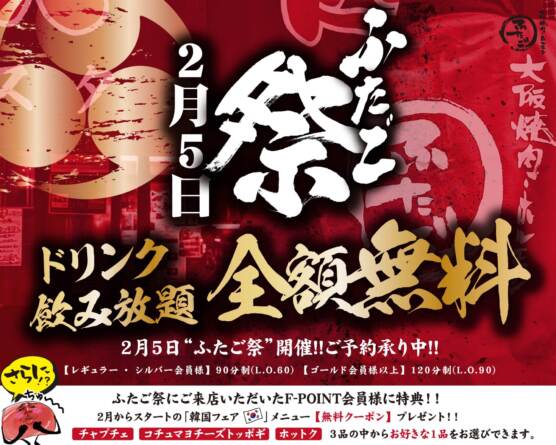 今すぐ予約!2月5日(月)はふたごの日!年に一度の「ふたご祭」は、生ビールもサワーもワインも…無料で飲み放題!