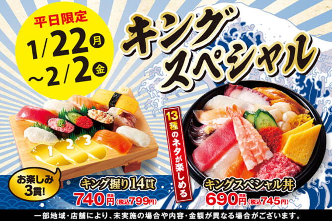 【小僧寿し】平日限定のお値打ちメニュー♪1/22(月)~「キングスペシャルフェア」開催!