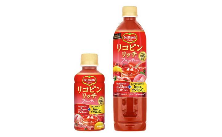 「デルモンテ リコピンリッチフルーティー」新発売! リコピンたっぷりでフルーティーなトマト飲料!