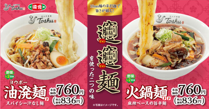 【ビャンビャン麺を使った二つの味】「油溌(ヨウポー)麺」と「火鍋麺(ひなべめん)」が期間限定で登場!