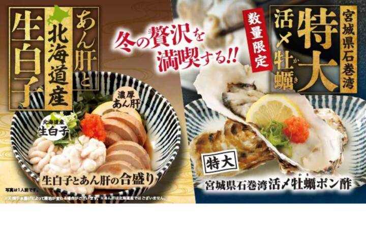 贅沢が渋滞中!!冬の贅沢満喫フェア開催~旬を丸ごと贅沢に堪能する、あん肝と北海道産生白子。~