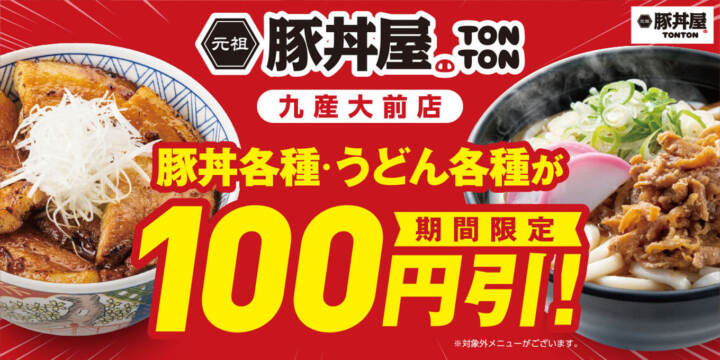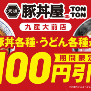 元祖豚丼屋TONTON 九産大前店で100円引キャンペーン開催!