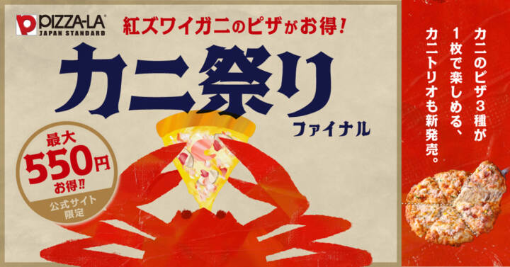 ピザーラ「カニ祭り」!!紅ズワイガニのピザが最大550円もお得!! カニのピザ3種が1枚で楽しめる「カニトリオ」も新発売!!