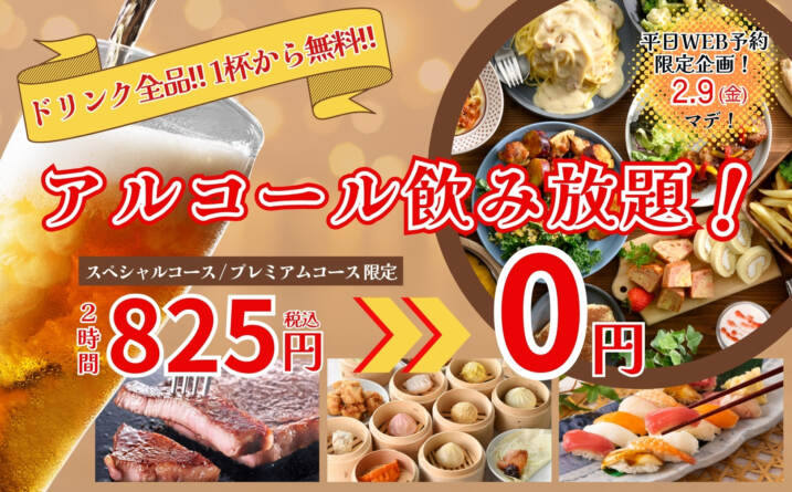 【新年会にも最適‼1杯から無料‼2時間飲み放題‼】2/9迄のWEB予約限定企画!『フェスタガーデン横浜ワールドポーターズ店』にて2…