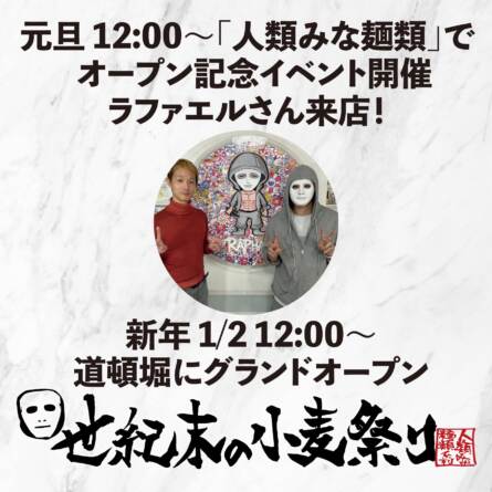 UNCHI株式会社が運営する大阪行列No.1ラーメン店「人類みな麺類(大阪・南方)」に登録者174万人YouTuber「ラファエル…