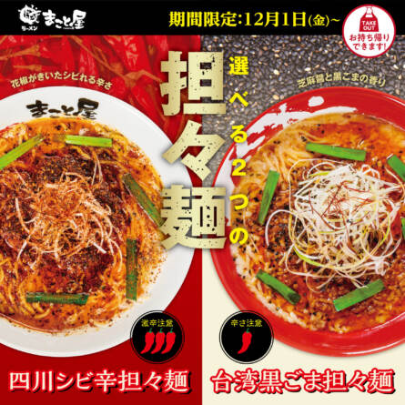 【毎年好評!冬の期間限定】2023年12月1日(金)よりラーメンまこと屋全店で『選べる2つの担々麺』販売中!