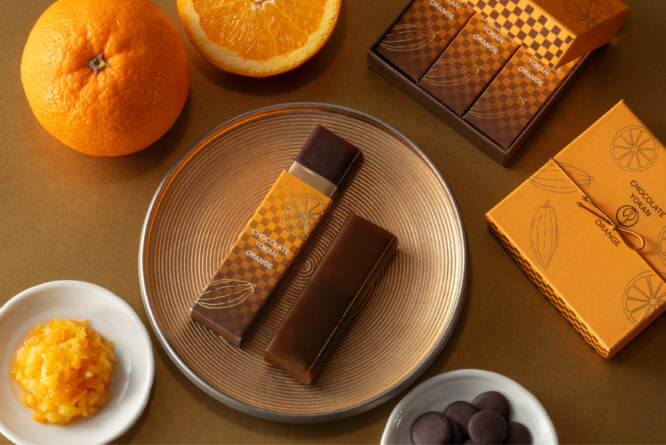 カカオ72%チョコ×国産ネーブルオレンジが和菓子に。「チョコレート羊羹 オレンジ」2024年1月14日(日)新発売。