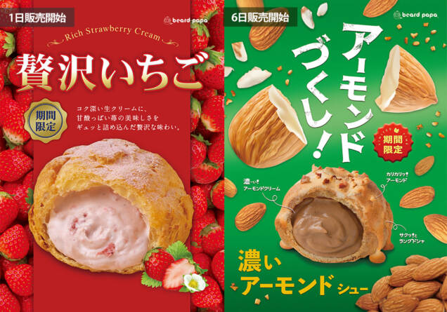 Happy“Chou”Year!2024年のビアードパパは、人気の“贅沢いちご”でスタート!1/6からは、新作“濃いアーモンドシュ…