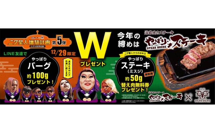【年末年始もお得にやっぱる!】年内最後のニクの日・やっぱりステーキからやっぱりバーグとお年玉をプレゼント