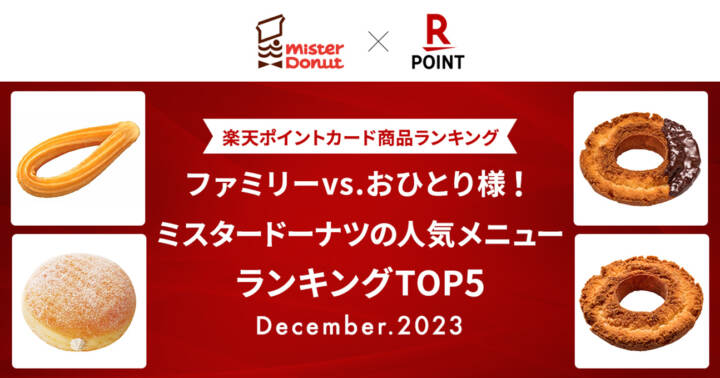 【楽天ポイントカード商品ランキング】「ファミリーvs.おひとり様!ミスタードーナツの人気メニューランキングTOP5」を発表
