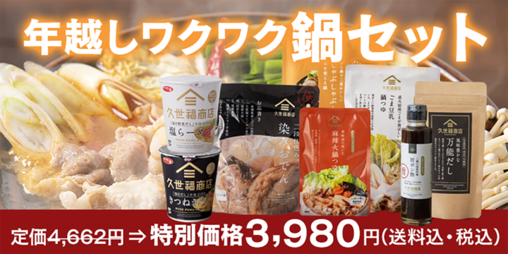 【期間限定】「年越しワクワク鍋セット」が、お得な特別価格で12/15(金)より販売開始!【久世福商店オンラインショップ限定】