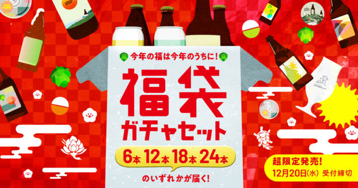 6本の値段で最大24本が当たる!昨年大好評のクラフトビール福袋が再び!グッズも付いてくるお得なクラフトビール福袋セットをオトモニが…