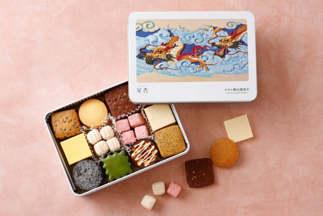 【ホテル雅叙園東京】ホテル内のアートをモチーフにしたデザイン缶シリーズより、2024年の干支スイーツ「クッキー缶・龍」を期間限定販…