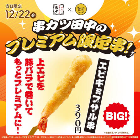 上エビを豚バラで巻いた贅沢で新感覚の串カツ!「エビギョプザル」が12月22日(金)限定で再登場!
