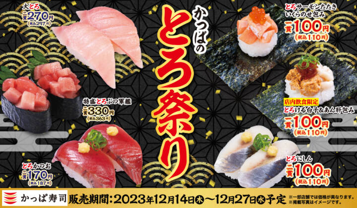 人気ネタや冬の味覚のとろける美味しさを堪能する14日間 とろける口福を味わう全15品※「かっぱのとろ祭り」開催