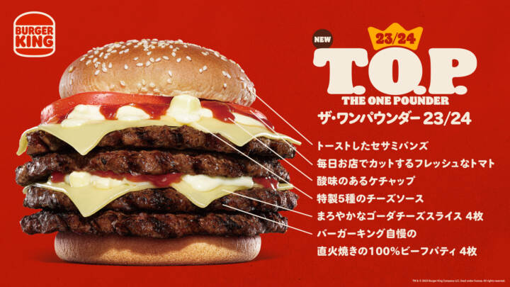 バーガーキング® が年末年始限定で紅白カラーの大型チーズバーガー新発売!直火焼きビーフ4枚×特製5種のチーズソース×フレッシュトマ…