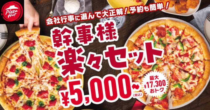 【最大17,300円OFF】最高に賢い仕事納めはこれだ!お一人様あたり500円でピザが食べられる「幹事様 楽々セット」が12/11…