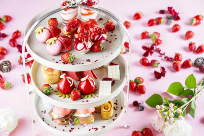 冬の雪色“ホワイト”と春の桜色“ピンク”と旬のいちごの“赤”のコンビネーション 待ち遠しい春をいちごで先取りした「ストロベリーアフ…