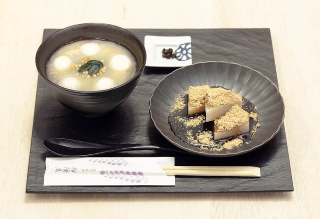 寒い冬にはホッとあたたまる「柚子白玉しるこ(温)」を亀戸天神前本店でお召し上がりください。