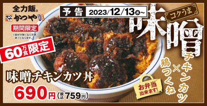 【60万食限定】冬はこれ!コクうま「味噌チキンカツ」とんかつ専門店かつやに新登場