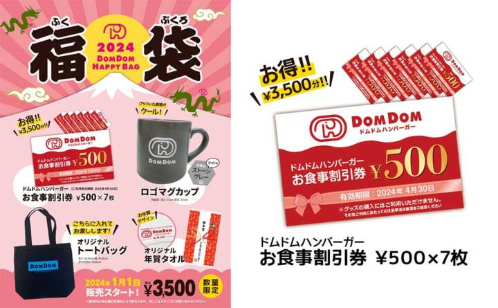 ドムドムハンバーガー 「福袋2024」販売決定! 2024年1月1日 販売スタート