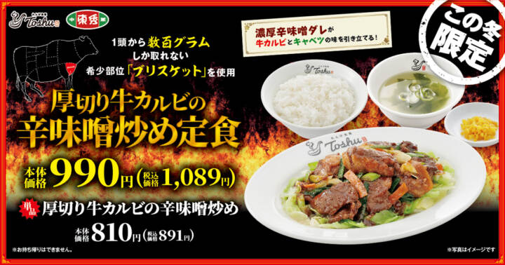 【この冬限定】「厚切り牛カルビの辛味噌炒め定食」が期間限定で登場!