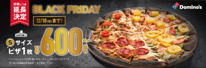 ドミノ・ピザならまだ間に合う!衝撃の60%OFF!最大2,830円おトクに! ブラックフライデーセール大好評につき12月10日まで…