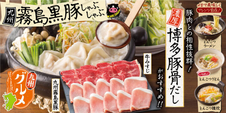 【しゃぶ葉】“厳選ブランド豚”と“冬限定の新だし”が登場!九州を味わう「霧島黒豚&博多豚骨だし」