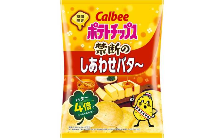 “禁断の味わい”が2年ぶりに復活!通常の「しあわせバタ~」に比べてバターの量が4倍になった『ポテトチップス 禁断のしあわせバタ~』