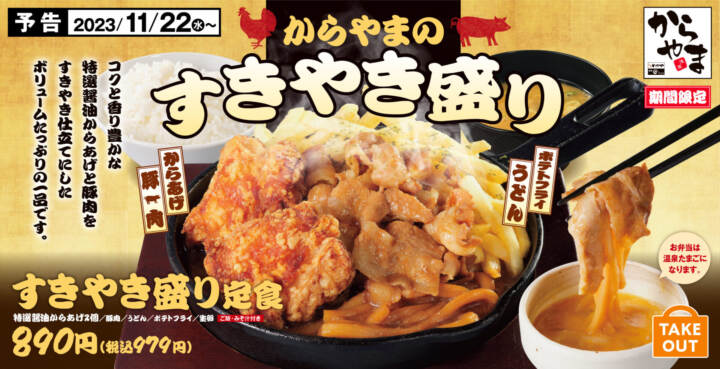 冬の日本代表を"からあげ"で。期間限定「すきやき盛り定食」からやまに新登場!