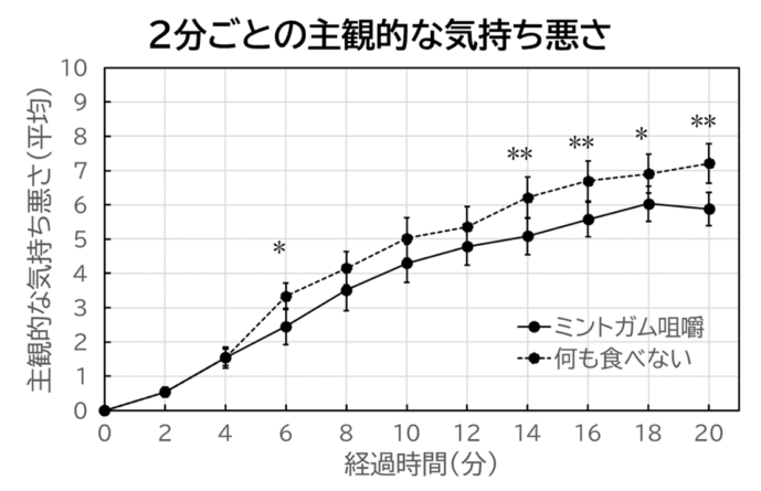 ミントガムを噛むことにより、車酔いが軽減することが明らかに!