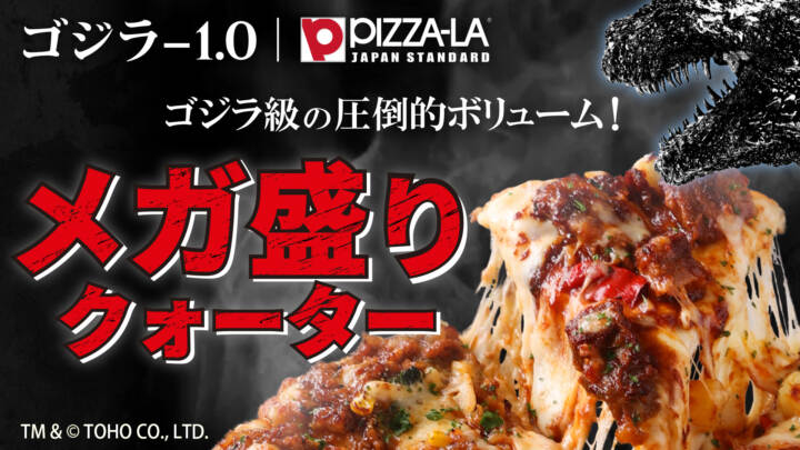 ピザーラから『ゴジラ-1.0』コラボ商品発売!ゴジラ級のボリューム感!「メガ盛りクォーター」「メガ盛りバスケット」!