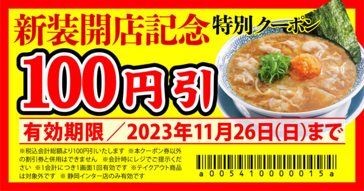 【丸源ラーメン】『丸源ラーメン 静岡インター店』が2023年11⽉16日(木)に新装開店!