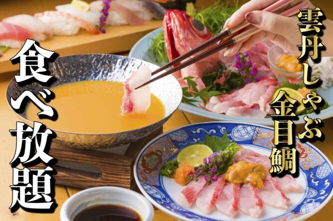 金目鯛×雲丹の濃厚しゃぶしゃぶに70種類のお寿司も食べ放題で6,999円!今年最後の贅沢プランが新登場!【すし酒場フジヤマ 秋葉原…