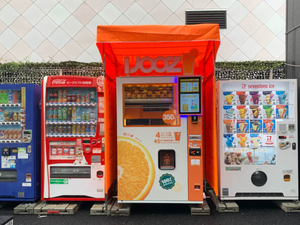 浅草の花やしき通り商店街で350円生搾りオレンジジュース自販機が稼働開始!