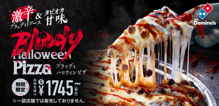 ドミノ・ピザ 血まみれハロウィンの最恐体験をお届け恐怖せよ!真っ黒な生地に真っ赤な激辛ブラッディソース「ブラッディハロウィンピザ」…