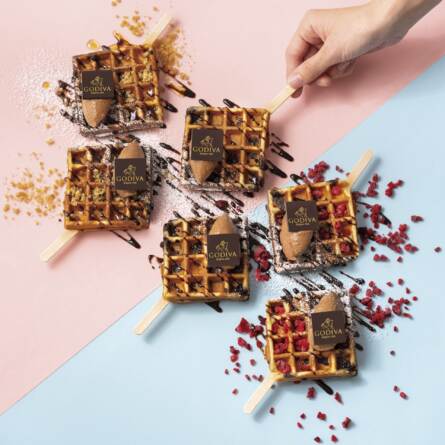 ジ アウトレット湘南平塚店限定 焼きたてワッフル「ワッフルポップ チョコレート」、「ワッフルポップ ラズベリー&チョコレート」、「…
